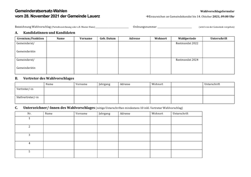 - Wahlvorschlagsformular kommunale Ersatzwahlen 2021