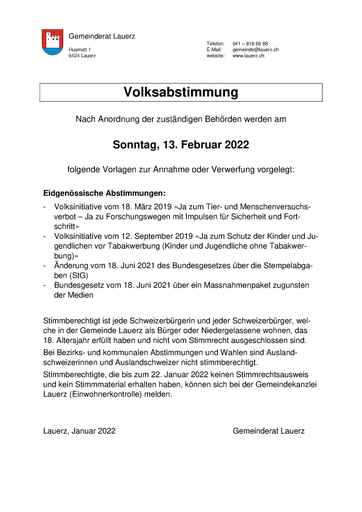 - Dekret für die eidgenössische und kommunale Volksabstimmung 2022-02-13